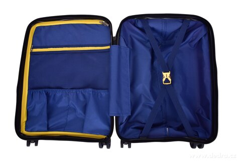 • wewnątrz walizki oddzielająca membrana na zamek błyskawiczny oraz pasy dla zabezpieczenia odzieży.