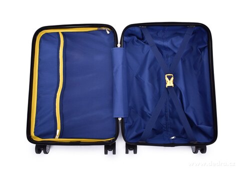 PILOT FC METROPOLAIR Wielofunkcyjna walizka podróżna, zamek TSA . Główna część walizki z gumowymi paskami do mocowania rzeczy i przedzielającą tekstylną membraną na suwak z siatkową kieszonką. Materiał błyszczący poliwęglan ABS. Wymiary: szer. 35 x dł. 20 x wys. 55 cm, waga ok. 3,1 kg.