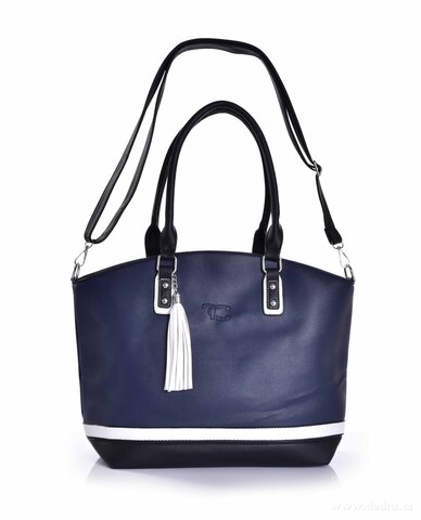 TRINITY torebka z ekoskóry w modnym granatowo-czarnym połączeniu z efektowną biała lamówką. Torebka została zaprojektowana w naszym biurze projektowym w Czechach.