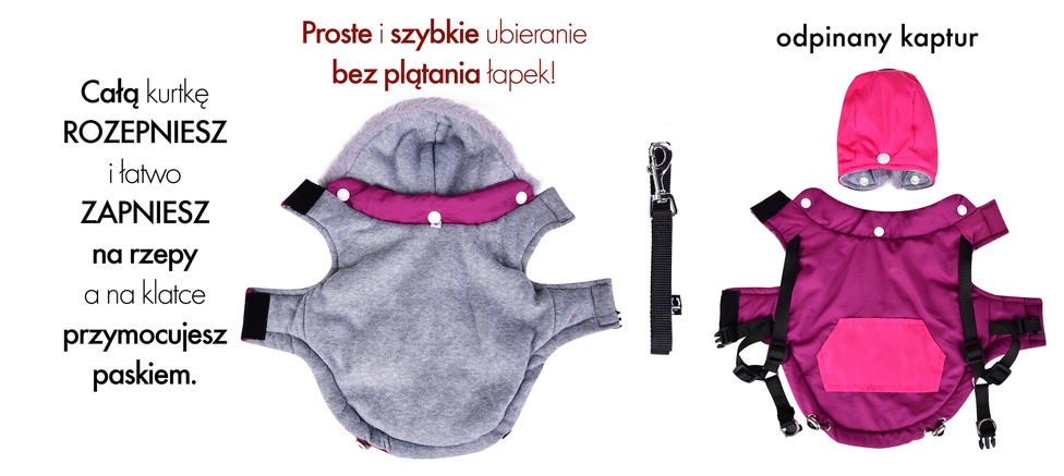 Łatwe i szybkie ubieranie bez plątania łapek! W zestawie są szelki i smycz, dzięki czemu nie potrzebujesz obroży = wygoda dla psa!