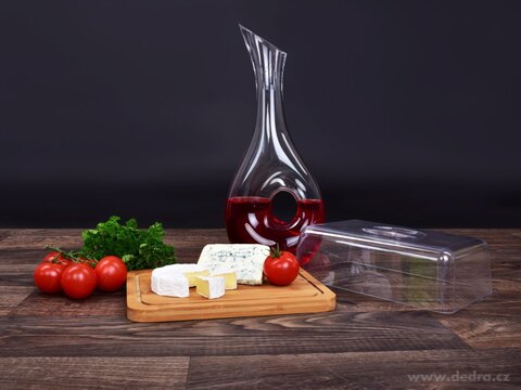 BAMBUSOWA DESKA Z KLOSZEM na sery i inne jedzenie, pokrywka z przezroczystego plastiku.