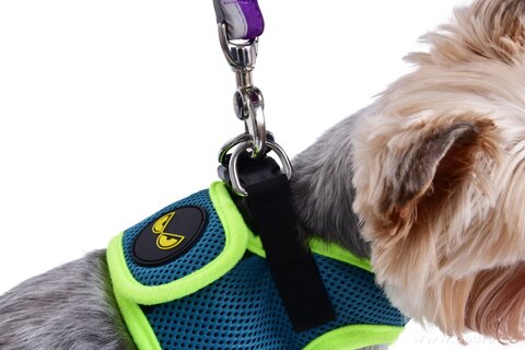metalowe oczka do przypięcia smyczy. Skład 100% PES, w rozm. 1 (XS), 2 (S), 3 (M), 4 (L), 5 (XL), 6 (XXL).