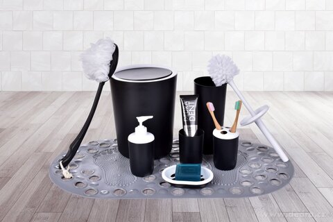6-elementowy zestaw łazienkowy z odpornego plastiku o matowej powierzchni.