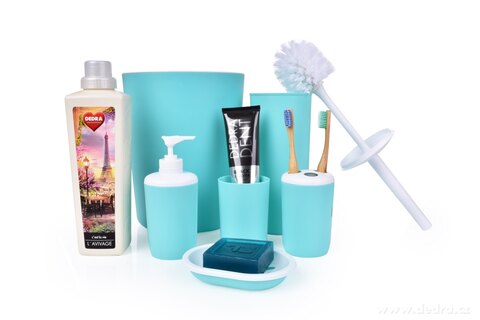 6-elementowy zestaw łazienkowy z odpornego plastiku.
