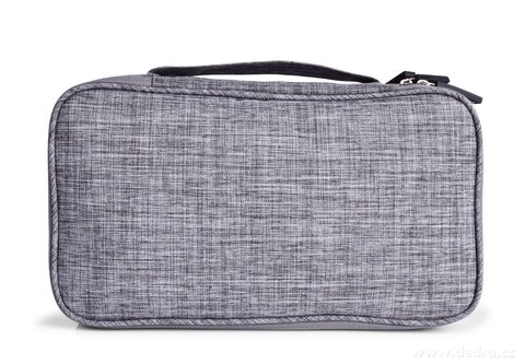 z szarego melanżowego materiału na zamek. Na 1. piętrze 5 przejrzystych kieszeni, 2. środkowe