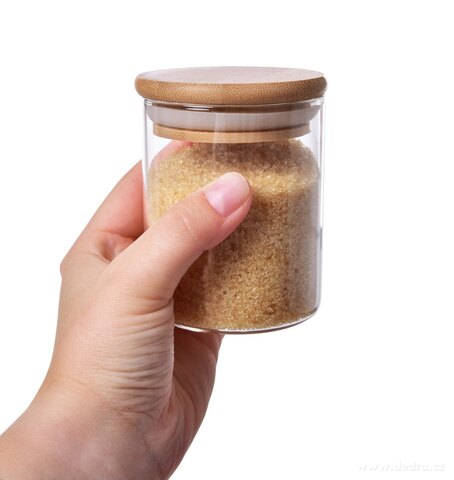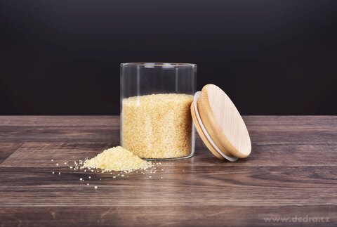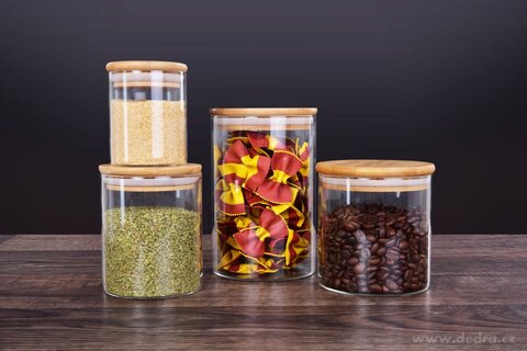 z bambusową pokrywką świetnie będą się prezentować na półce w kuchni.