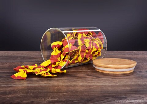 z bambusową pokrywką świetnie będą się prezentować na półce w kuchni.
