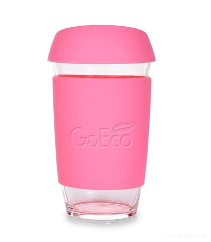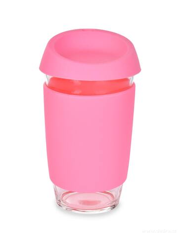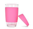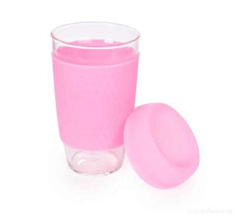 KELIMERO® szklany kubek ze zdejmowanym silikonowym paskiem i pokrywką, grubościenne szkło.