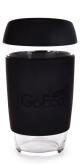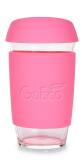 KELIMERO® szklany kubek ze zdejmowanym silikonowym paskiem i pokrywką, grubościenne szkło.