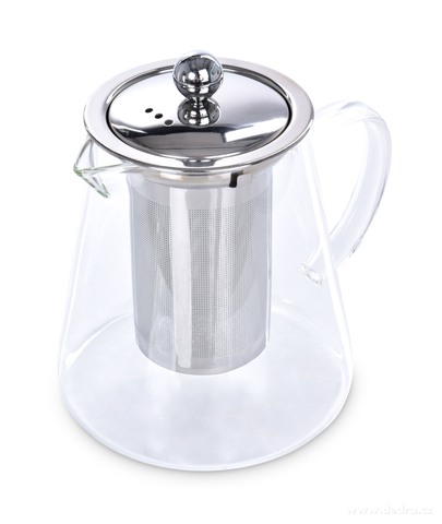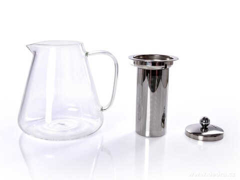 Dzbanek ze szkła borokrzemowego z metalowym sitkiem i pokrywką.