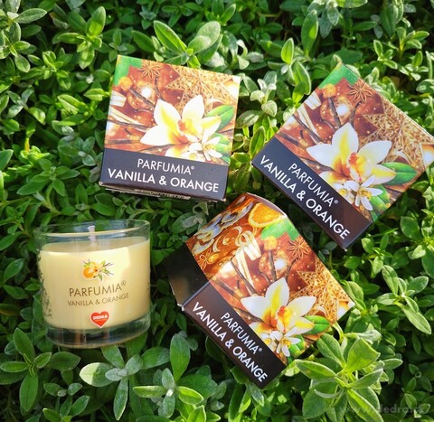 Zestaw zawiera: 3 x 55 ml sojowa EKO świeczka zapachowa PARFUMIA®, VANILLA & ORANGE.