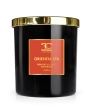 EKSKLUZYWNY ZAPACH w szklanym czarnym pojemniku z wewnętrzną lustrzaną powierzchnią w złotym kolorze i metalowym wieczkiem.