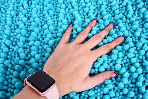 Z delikatnego mikrowłókna z tłoczonymi wypustkami różnej wielkości, maks. wysokość włosia 3 cm.