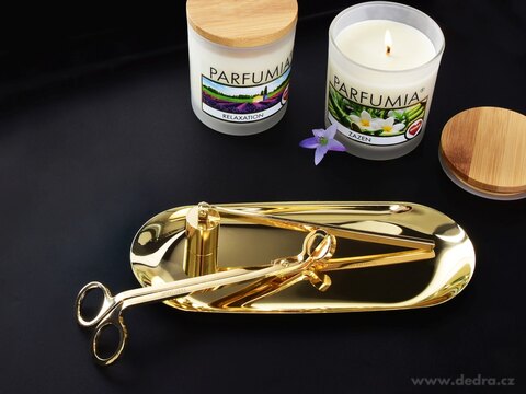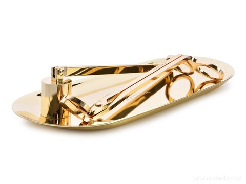 Praktyczna złota taca do odkładania gasidła i nożyczek.