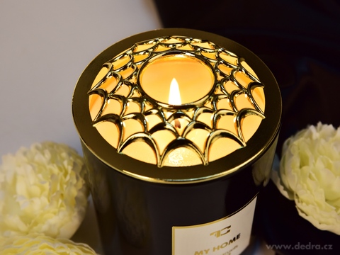 Elegancki design, metalowe, masywne wykonanie z wykończeniem powierzchni w złotej barwie. Ten ponadczasowy design pasuje do wszystkich kolorów i zapachów świec PARFUMIA® 250 ml.