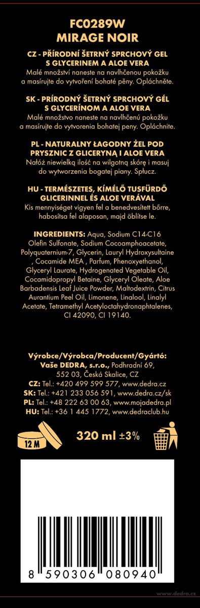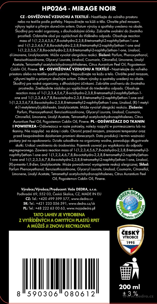 Producent / Importer: Vaše Dedra s. r. o., Podhradní 69, Česká Skalice, Republika Czeska