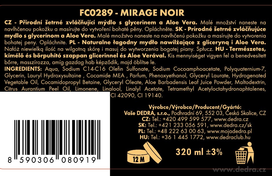 Zestaw prezentowy DEDRA MIRAGE NOIR to wyjątkowy zestaw dla mężczyzn ceniących elegancję i intensywny zapach. Zawiera żel pod prysznic, mydło nawilżające, odświeżacz powietrza i tkanin oraz dwustronną szczotkę do mycia. Całość zapakujesz w przezroczysty woreczek, który jest w komplecie. Idealny prezent dla mężczyzny.