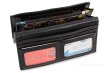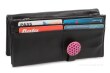 Portfel damski wykonany z ekoskóry, szczelne zamknięcie z aplikacją motyla. Dwie duże kieszenie na banknoty, kieszeń na monety zapinana na suwak, 2 przezroczyste kieszenie na fotografię lub prawo jazdy, 4 kieszenie na karty, 1 ukryta duża zamykana kieszeń np. na banknoty.