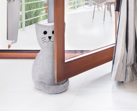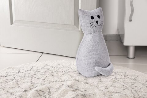 Tekstylny ogranicznik do drzwi w kształcie kota, solidnie wyściełany korpus