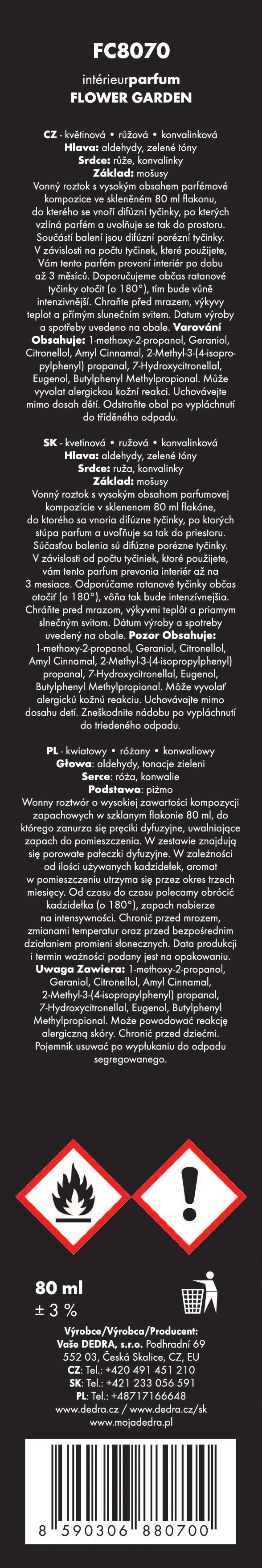FC INTÉRIEUR PARFUMS FLOWER GARDEN o objętości 80 ml wraz z dyfuzyjnymi porowatymi patyczkami.