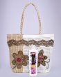 ZENA naturalna ręcznie wykonana torebka, wykonana ze słomy i papieru, ozdobiona koralikami i kwiatowymi aplikacjami. Posiada podszewkę, ucho dopasowuje się do kształtu ramion. Zamykana na zamek błyskawiczny, posiada kieszeń boczną na drobiazgi.