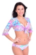 KAROL 3 częściowy strój + bolerko Rękawy ¾ wiązanie pod biustem. Biustonosz usztywniany z efektem push-up. wyjmowane fiszbiny i wyściółka. Regulacja na plecach i szyi. Głębokość odpowiadaz miseczkom A, B. figi w stylu klasycznym. Rozmiary: 1, 2, 3.