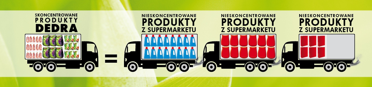 Dzięki mniejszemu plastikowemu opakowaniu naszego koncentratu oszczędzasz środowisko w późniejszym przetwarzaniu odpadów tworzyw sztucznych. Zaoszczędzisz pieniądze za niepotrzebne nadmierne plastikowe opakowania rozcieńczonych produktów i ich transport do supermarketu.