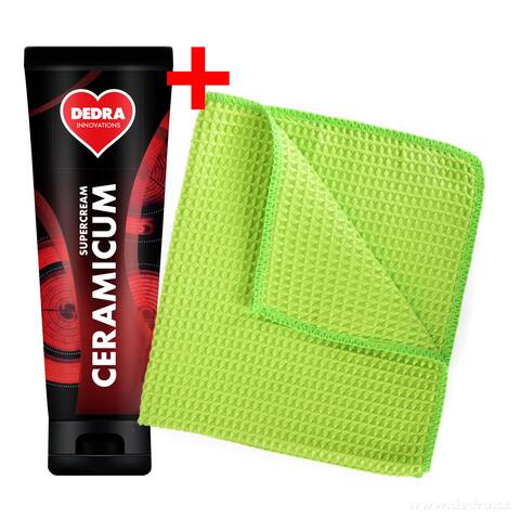 W komplecie: 1 x CERAMICUM 2w1 supercream, superkrem z mikrogranulkami do szklano-ceramicznych i indukcyjnych płyt 200 ml + 1 x ultrachłonna ściereczka z mikrowłókna o strukturze wafla.