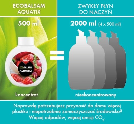 Receptura przyjazna środowisku! Wysoko skoncentrowany środek do ręcznego zmywania naczyń z aktywnym składnikiem myjącym z oliwy z oliwek i oleju kokosowego. Opakowanie 500 ml balsamu AQUATIX odpowiada czterem klasycznym, nieskoncentrowanym płynom do mycia naczyń ze sklepu. Gęsta piana, duża moc odtłuszczania i przyjemnie uczucie dla dłoni.