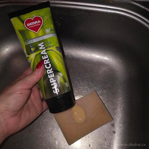 Duża tuba z olbrzymią siłą! Progresywny uniwersalny krem czyszczący do zabrudzeń w kuchni i łazience. Wyczyści delikatnie bez zarysowań powierzchni. Idealny do grubych zanieczyszczeń na naczyniach, ceramice sanitarnej, wannach i zlewach.