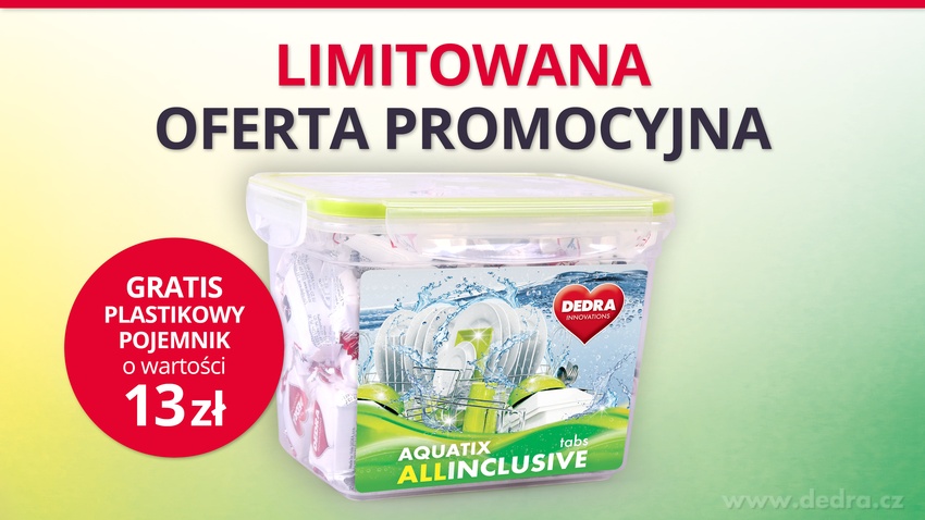 Ze względu na fakt, że kolejne opakowania otrzymamy na koniec MAJA, zdecydowaliśmy się umieścić tabletki do zmywarki ALL INCLUSIVE TABS po 50 sztuk w pojemniku na żywność KLIK & KLAK.