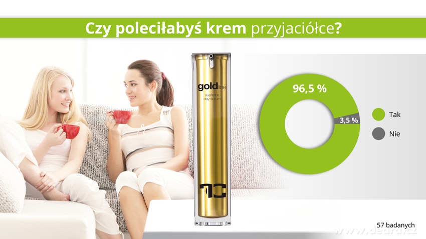 Większość badanych poleciłaby serum swojej koleżance. Dlaczego? 81% użytkowniczek porównała krem z produktami aptecznymi. Miło nam to słyszeć, ponieważ kremy z apteki kosztują nawet 10 razy więcej.