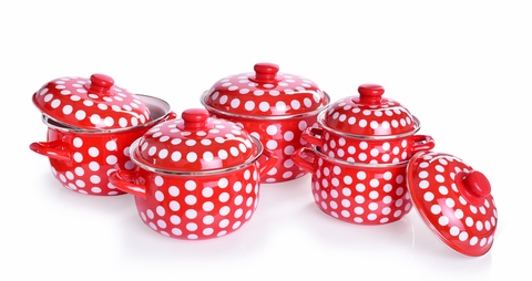 Emaliowane naczynia w groszki rozweselą każdą kuchnię i wyczarują tą odpowiednią domową atmosferę. Kiedyś mieliśmy podobne i rozeszły się jak świeże bułeczki!