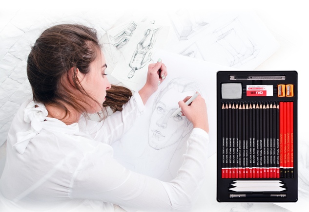 Eksluzywny zestaw artystycznych kredek najwyższej jakości lub rysunkowy zestaw ołówków grafitowych to idealny świąteczny prezent