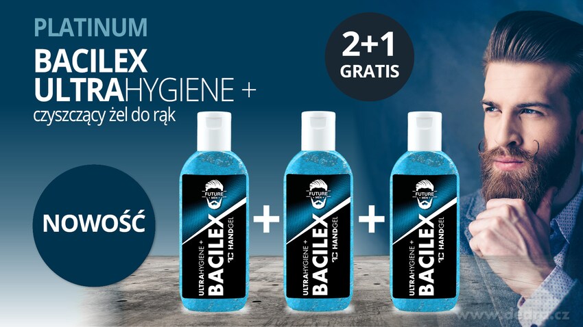 HANDGEL BACILEX ULTRAHYGIENE+ PLATINUM czyszczący żel do rąk, 65 % alkoholu, 100 ml o męskim zapachu...