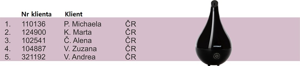 1. do 5. miejsca zyska.............1600 ml SONICZNY AROMADYFUZOR jonizuje i nawilża powietrze w pomieszczeniu.