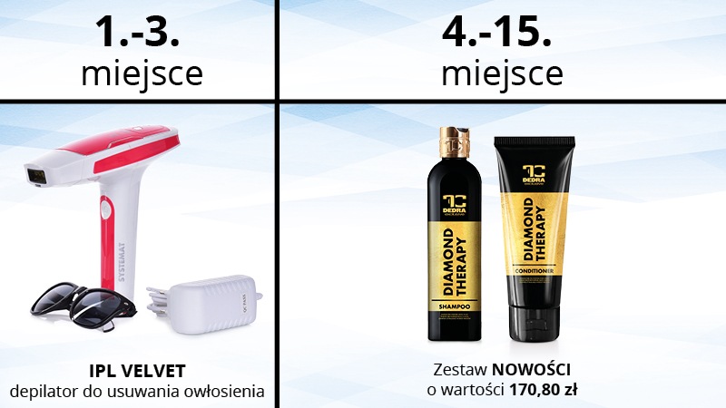 1. do 3. pozycji zyska..........IPL VELVET depilator, urządzenie do usuwania owłosienia za pomocą światła pulsacyjnego o wartości 658,49 zł.