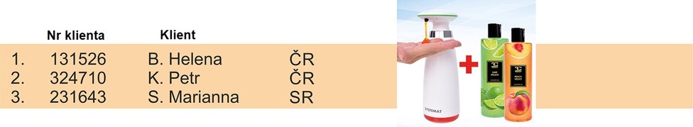 1. do 3. miejsca zyskuje.........HIGIENICZNY BEZDOTYKOWY automatyczny DOZOWNIK mydła o wartości 169,59 zł (zob. na obrazku).