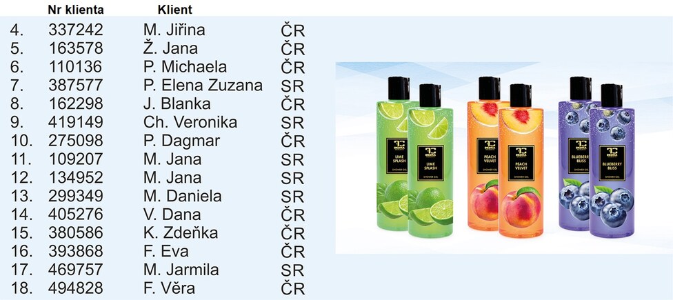 4. do 18. miejsca zyskuje.......paczkę naturalnych owocowych żeli pod prysznic o wartości zł 145,74 (zob. na obrazku)