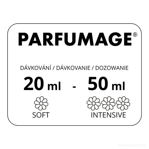 1. Parfumage (czyt.: parfemaż) stosuje się zamiast zmiękczacza lub perełek zapachowych (nalej do dozownika na płyn do płukania w pralce). Wysoka zawartość perfum zapewnia długotrwały i intensywny zapach.