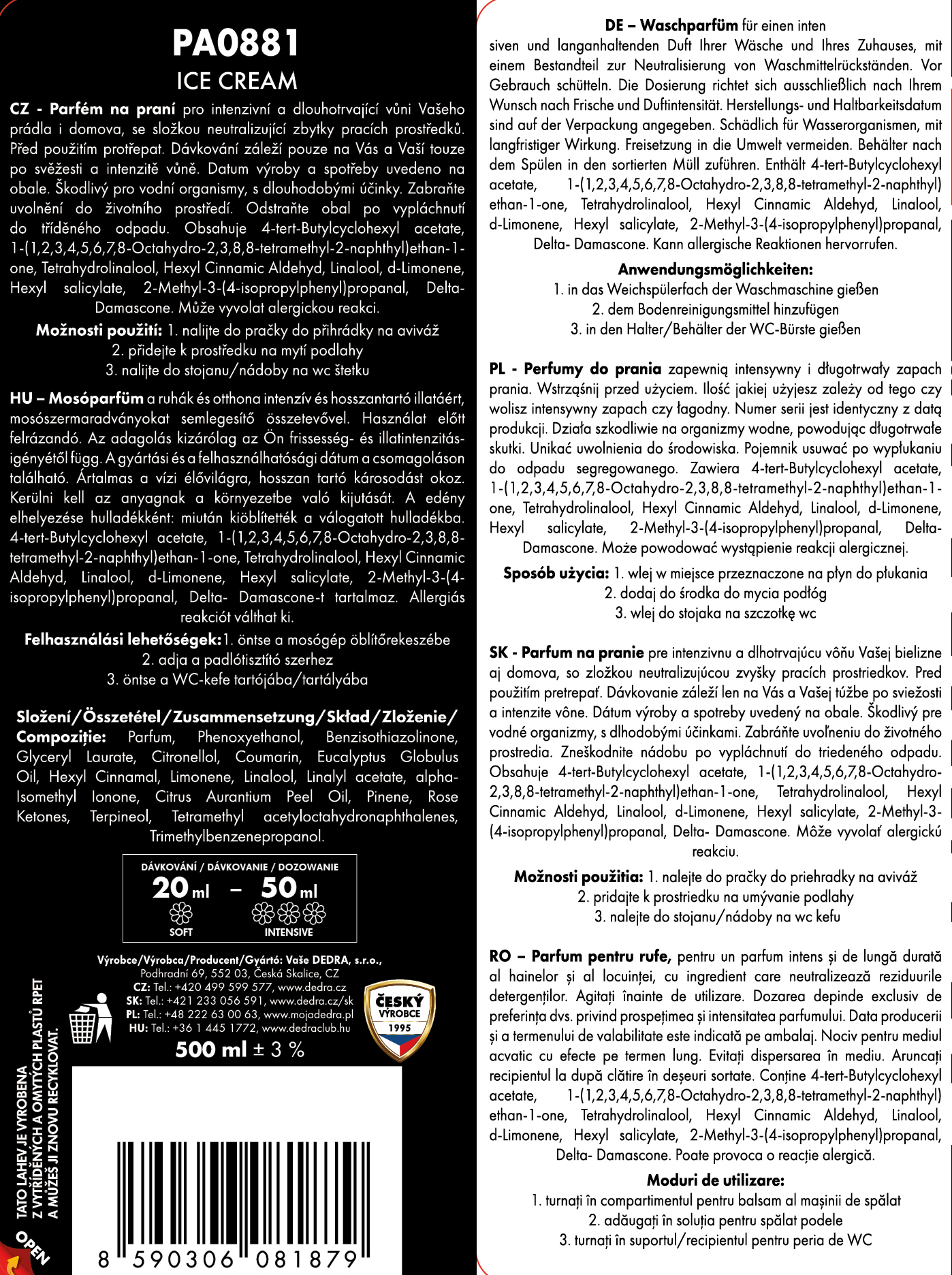 Producent: Vaše Dedra s. r. o., Podhradní 69, Česká Skalice, Česká republika