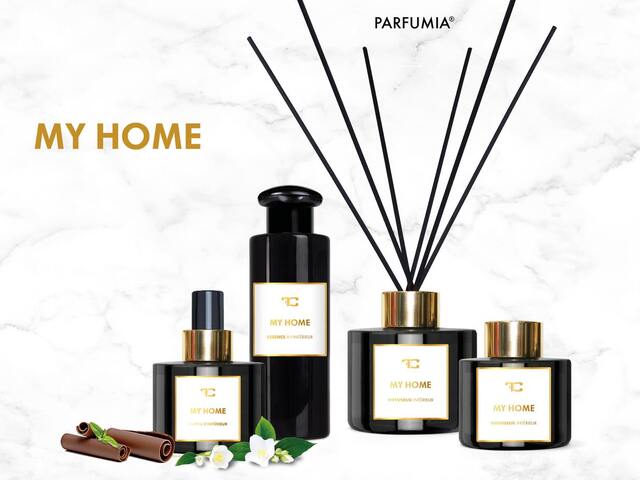 MY HOME- odkryj pociągający zapach z nutami drzewnymi, bergamotką i pomarańczą z akordami jaśminu, czekolady oraz piżma.