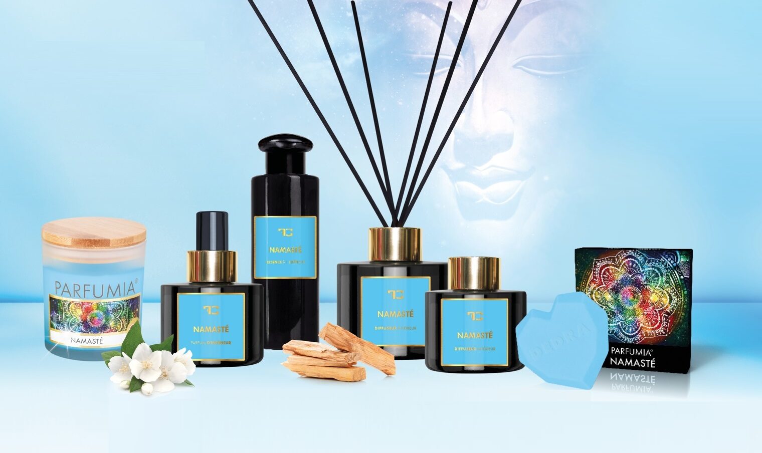 NAMASTÉ- medytacyjny zapach pełen tonów róż z cytrusową nutą, drewnem cedrowym, tonką i urzekającym jaśminem.