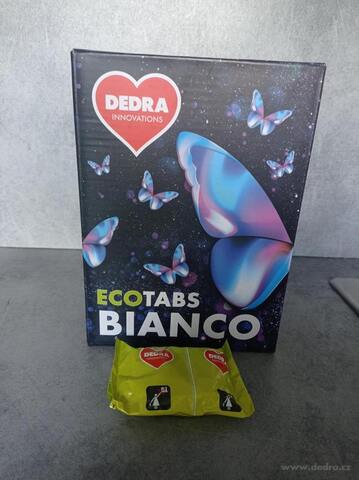 BIANCO ECOTABS to wysoce skuteczne tabletki do prania białego z wybielającym składnikiem OXYDOO oraz bioenzymami. Radzą sobie z uporczywymi plamami – krew, pot, trawa, owoce – i to już w niskich temperaturach. Tabletki błyskawicznie się rozpuszczają oraz nie pozostawiają resztek. Biel bez kompromisów już po pierwszym praniu.