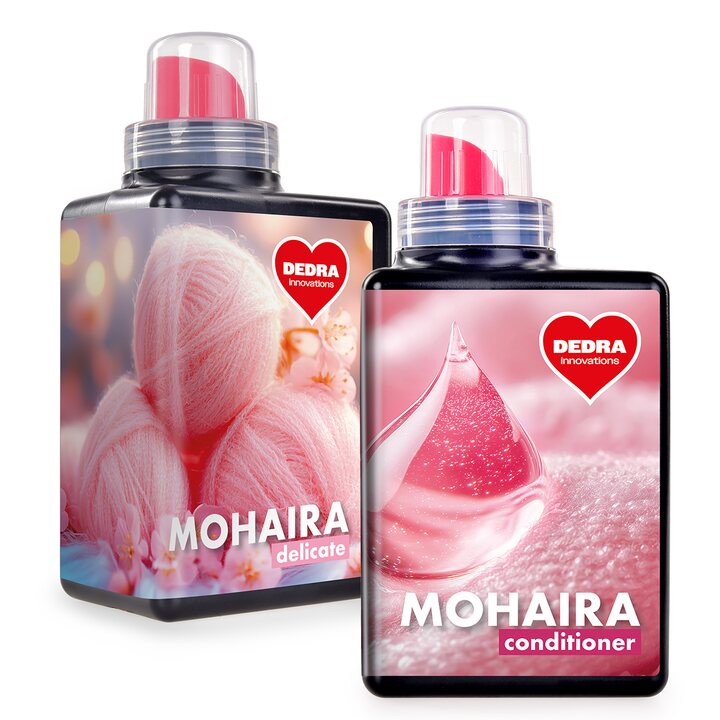 Żel MOHAIRA DELICATE skutecznie, a jednocześnie łagodnie pierze, usuwając zabrudzenia bez naruszania struktury włókien. Odżywka MOHAIRA CONDITIONER zmiękcza oraz wygładza włókna, eliminuje elektryzowanie i pomaga zachować piękny wygląd ubrań na dłużej.
