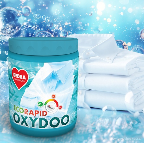 Uniwersalny wybielacz i odplamiacz OXYDOO ECORAPID z aktywnym tlenem oraz mydłem roślinnym. Aktywuje się już w 40 °C. Doskonały na plamy pigmentowe, biologiczne i tłuste. Dodaj do dowolnego środka piorącego dla silniejszego działania.