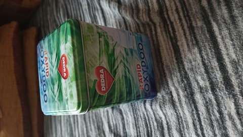 🧺 Dodaj proszek do komory na środek piorący albo wymieszaj go z ciepłą lub gorącą wodą w małej plastikowej miarce i nałóż bezpośrednio na plamę.