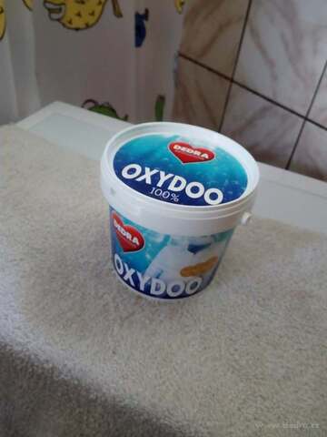 OXYDOO 800 g w praktycznym wiaderku Zawiera aktywny tlen co zapewnia skuteczność, w połączeniu z ciepłą wodąaktywują się najskuteczniejsze substancje, które niszczą brud i bakterie . 1) usuwanie plam z białych i kolorowych ubrań. a) dodaj środek do detergentu b) Zastosuj rozwiązanie bezpośrednio na plamę 2) zastosuj wybielacz bezpośrednio na pro...